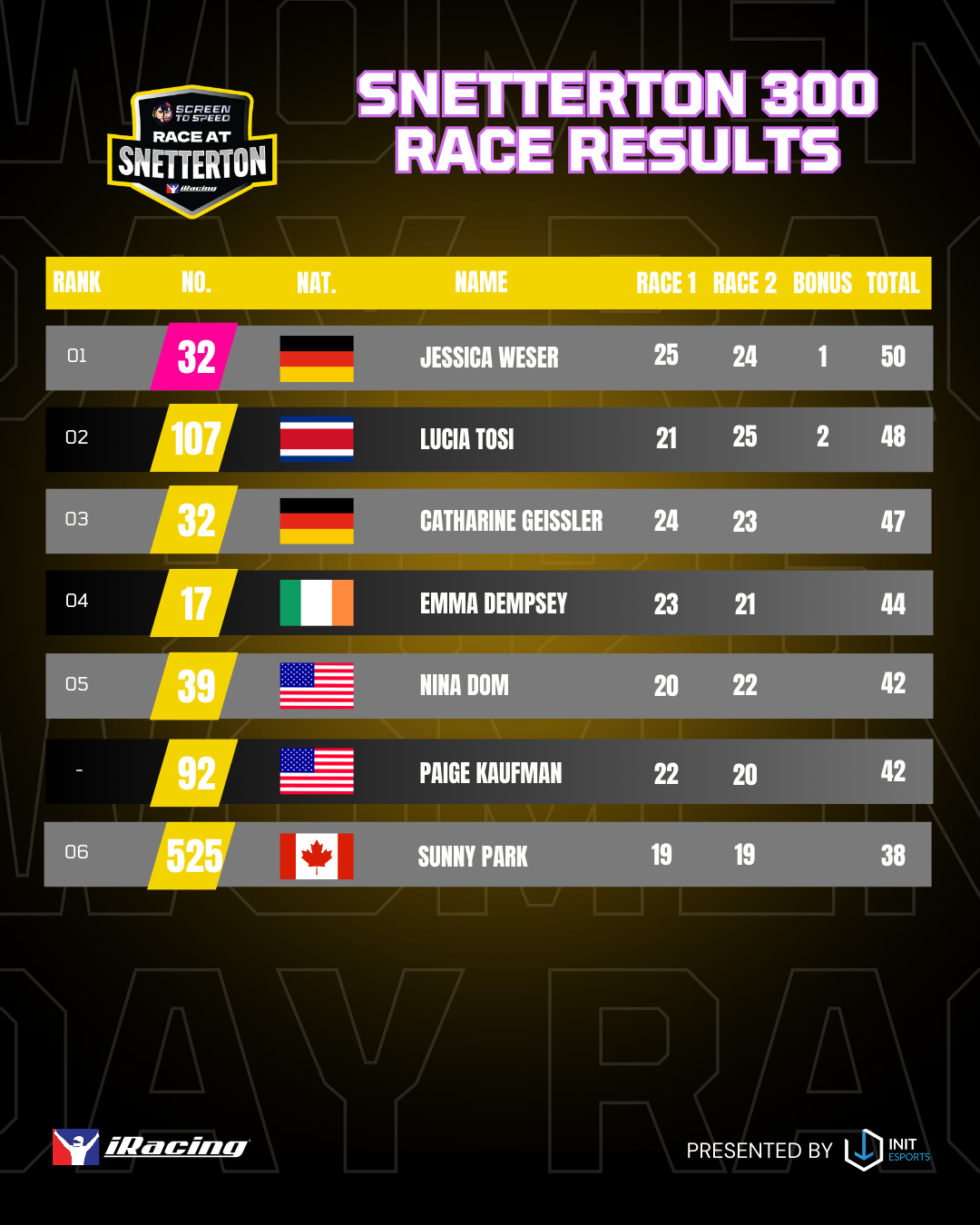 🏁 Jessica Weser stole the spotlight with a masterclass in speed and composure, clinching overall victory thanks to her relentless pace across both races. Cool, calm, and lightning fast — Weser’s performance set the standard.